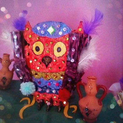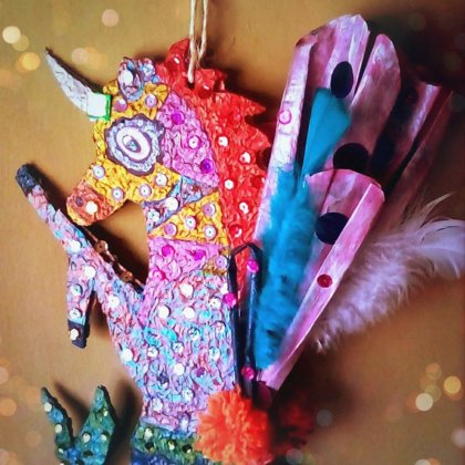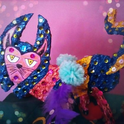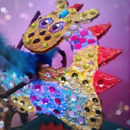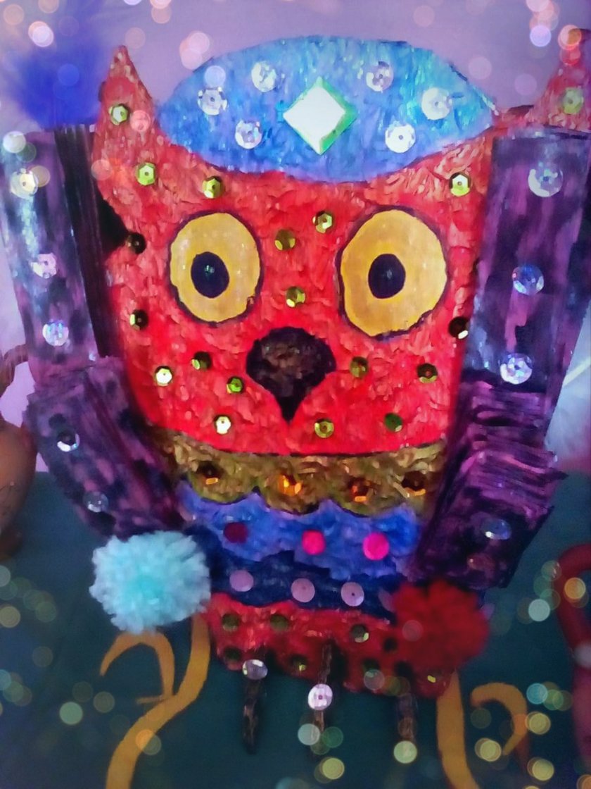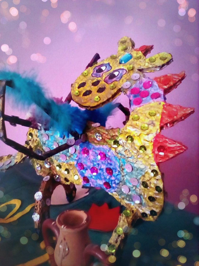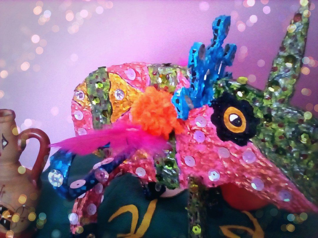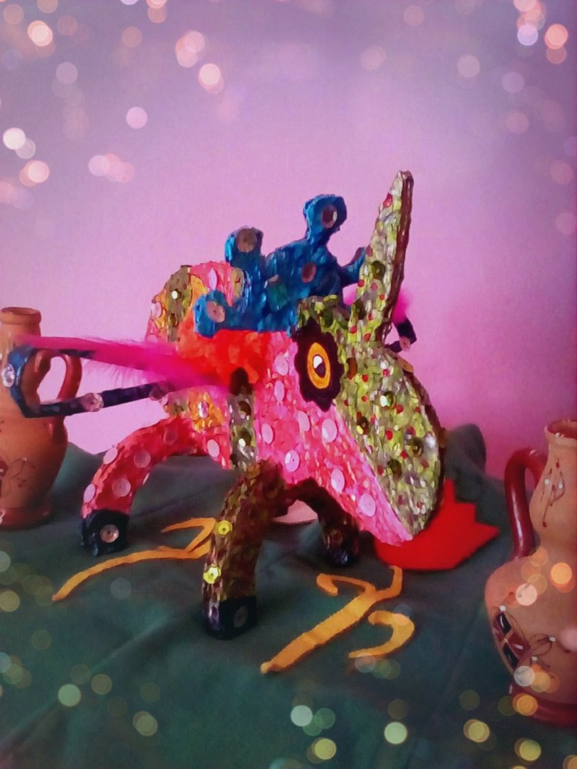 Animales imaginarios , Brujas alegres : Poseen garras para aferrarse a la tierra y alas para no olvidar sus sueños Poseen el arte de creerle a los sueños Son guías espirituales. (Técnica Cartoneria y papel de diario reciclado ) Arte Mexicano , Viva Mexico